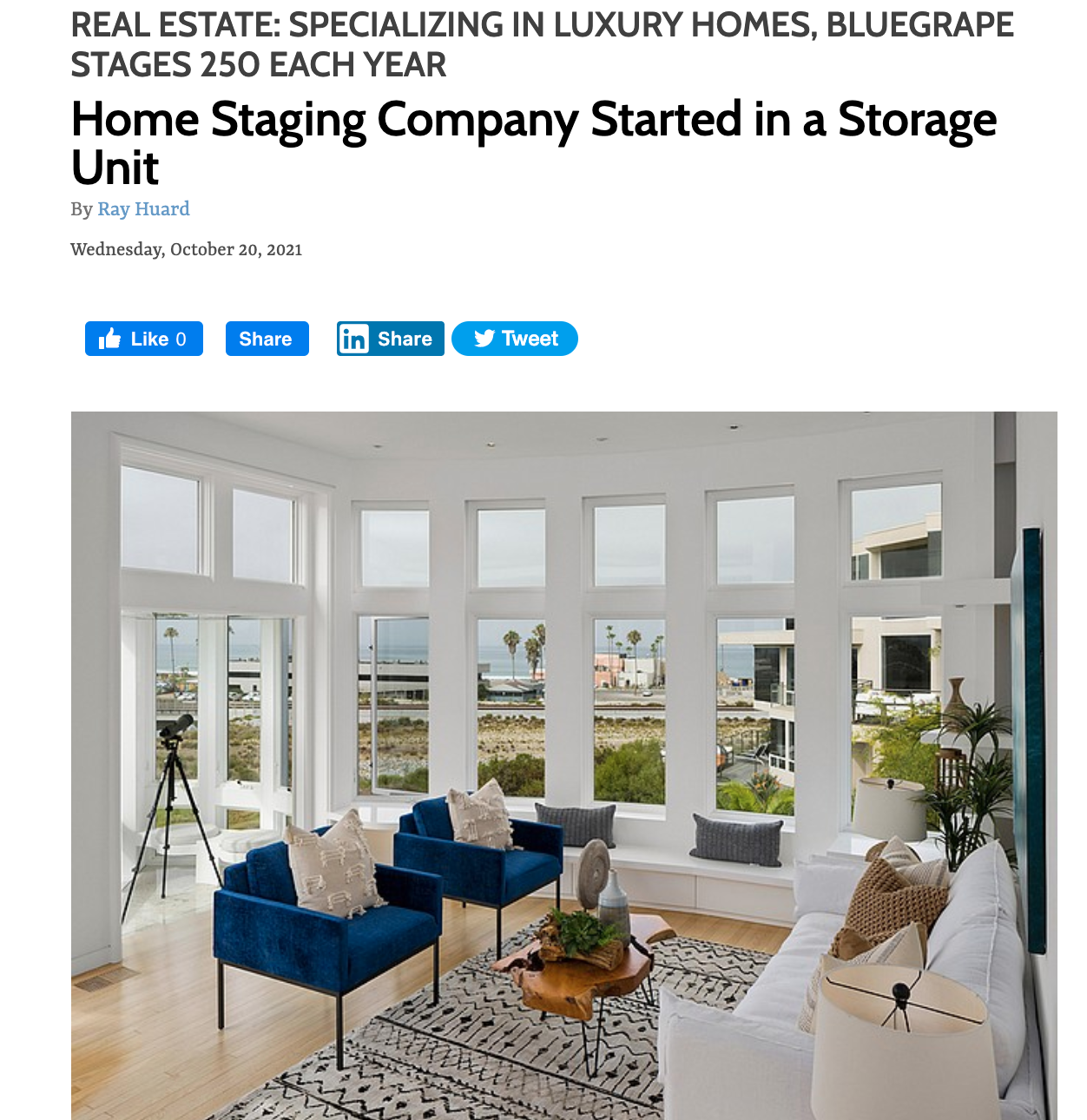 San Diego Business Journal had a story on BlueGrape detailing the journey from then to now. The print edition was carried out in September. Read more here: https://www.sdbj.com/news/2021/oct/20/home-staging-company-started-storage-unit/